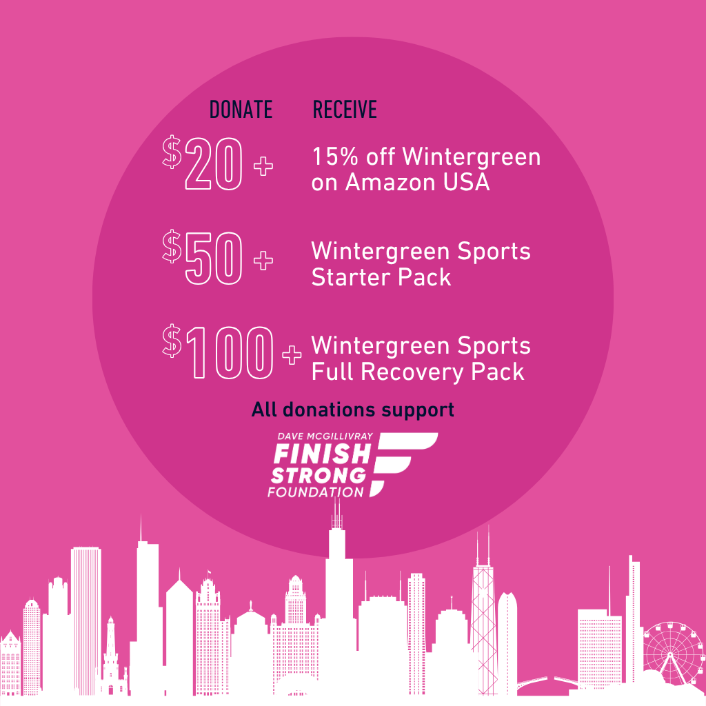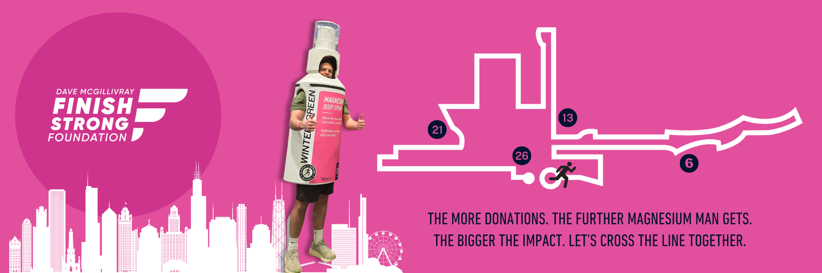 Donate nowAt Wintergreen, we believe in the power of movement, not just for recovery, but for change. That’s why we’re proud to have the Magnesium Man run the 2025 Bank of America Chicago Marathon in support of the Dave McGillivray Finish Strong Foundation. This inspiring organization is dedicated to helping kids build strong foundations through physical activity, literacy, and acts of kindness.